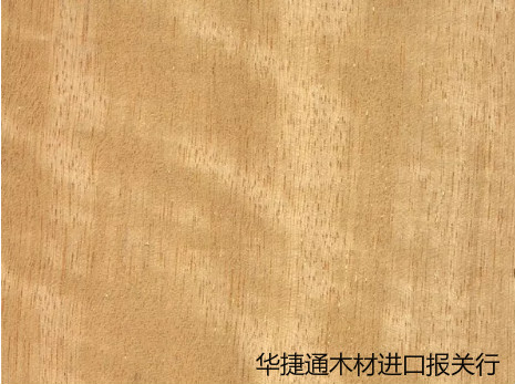 双蕊豆木材(Movingui)简介常用名:Movingui(莫文圭),Ayan(阿扬),Nigerian Satinwood(尼日利亚缎木)。 科学名:Distemonanthus benthamianus。 中文名:双蕊豆,亦名双蕊苏木、两蕊苏木。因在新的豆科分类体系中,该属种隶属酸榄豆亚科,故提倡使用“双蕊豆”,而避免使用在标准中文名中出现“苏木”。 地理分布:西部非洲。 树木尺寸:树高100-125英尺(30-38米),主干直径3-5英尺(1-1.5米)。 平均气干密度:45磅每立方英尺(720千克每立方米)。 基本密度:0.58克每立方厘米,含水率12%时为0.72克每立方厘米。 詹卡硬度:1 280磅力(5 680牛顿)。 抗弯强度:18 740磅力每平方英寸(129.2兆帕)。 弹性模量:1 773 000磅力每平方英寸(12.23吉帕)。 抗压强度:8 890磅力每平方英寸(61.3兆帕)。 收缩率:径向3.5%,弦向5.7%,全体积10.0%,弦径比为1.6。 色泽:黄色至橙褐色,颜色会随时间流逝而加深。这种木材经常会有特殊花纹,如杂色斑纹或水波纹。 上二图:双蕊豆木材样板,上为砂光,下为漆光 纹理与材质:纹理直至交错,有些呈现水波状。结构均匀,天然光泽度好。 端面特征:散孔材,管孔大至甚大,少至甚少,无特别排列方式。单管孔及2-3径列复管孔,树胶和其他沉积物偶见。生长轮不明显。木射线窄至中,间隔中。轴向薄壁组织翼状,菱形,连续型和带状,局部为对角线波浪形带状。