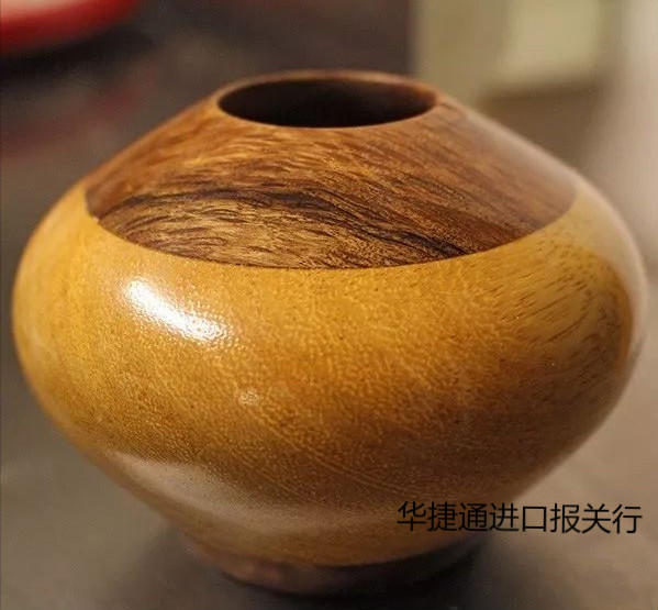 上图:以双蕊豆木材和木麻黄木材制作的车旋制品 评论:如同很多其他具有光泽的黄色木材,双蕊豆(Movingui)亦常被称作缎木(Satinwood),不过这种木材的颜色常见不均匀部分,如很多杂色斑纹,这一特点使之适合做为装饰单板。