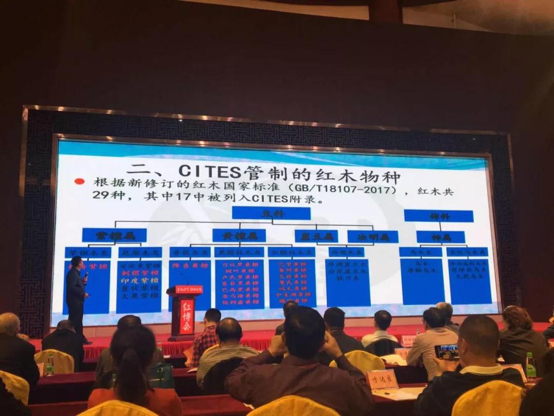 本次论坛的另一个关注点,国家濒危物种进出口管理办公室植物处袁良琛副处长针对cites公约管制及我国常见红木进口的情况进行了讲解。目前我国国标红木中紫檀木类、花梨木类中的刺猬紫檀、香枝木类、黑酸枝木类、红酸枝木类全部属于cites公约名单中。袁处说到,我们在进口木材时,一定要查询该木种是否属于cites公约或者是国家植物目录管制之内,对管制内的标本类型实行CITES允许进口证明书制度,不管制的则实行《非<进出口野生动植物商品目录>物种证明》。同时也提到这两年的刺猬紫檀则因为政策的变动导致到港后无法正常清关,各方面成本激增。 另外,袁处还在会上预测,今年召开的国际cites公约大会,极大可能还会继续增加个别常见木种纳入cites公约附录内。我司将保持高度关注,提前做好防范,以避免类似2013年大红酸枝及2016年刺猬紫檀带来的冲击。